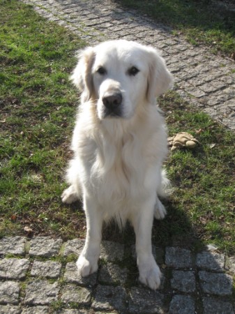 Unser Gismo wurde am 30.Januar 2005 in Herborn geboren und heißt eigentlich Merlin vom Seelbacher Forst. Ostern 2005 kam er im Alter von 8 Wochen zu uns. Er hatte sich super schnell in unser Familienleben eingefügt. Nur mit Sam, unserem jüngsten, damals 3 Jahre alt, gab es so manches Kämpfchen, bis Gismo kapiert hatte, dass auch Sam in der Rudelrangfolge über ihm steht. Er ist super verschmust und lässt sich wirklich von jedem streicheln. Habe ihn in den letzten 7 Jahren nur ein einziges Mal knurren hören und das in einem kleinen Gerangel mit einen Labrador. Man kan einfach alles mit ihm machen: Das Essen wegnehmen, ihn auf den Rückenlegen und von Kopf bis Fuß untersuchen. Zecken entfernen, auch am Auge, ist mit ihm überhaupt kein Problem. Er würde nie etwas vom Tisch stehlen, selbst wenn auf dem Wohnzimmertisch eine Platte mit Lachs steht. Er zerbeist auch nichts, oder klaut Schuhe oder Spielzeug. Denn er weiß ganz genau, was seine Spielsachen sind. Früher ist er mit Thomas zu joggen gegangen, aber inzwischen ist er doch schon etwas älter geworden und Thomas zu schnell für ihn und es tut ihm nicht mehr so gut. Deshalb muss er jetzt mit mir und Meike zum Nordic Walking. Er ist wirklich super unkompliziert. Es gibt nur eine einzige Sache die uns Probleme bereitet: Er hasst Auto fahren. Freiwillig steigt er nicht ins Auto. Haben echt schon alles versucht, mal geht es etwas besser aber meist geht gar nichts und wir müssen ihn rein heben. Was natürlich super viel Spaß macht wenn er so richtig schön nass und dreckig ist. Allerdings ist es dann nicht so, dass er randaliert oder bricht. Nein, er ergibt sich dann einfach seinem Schicksal. .